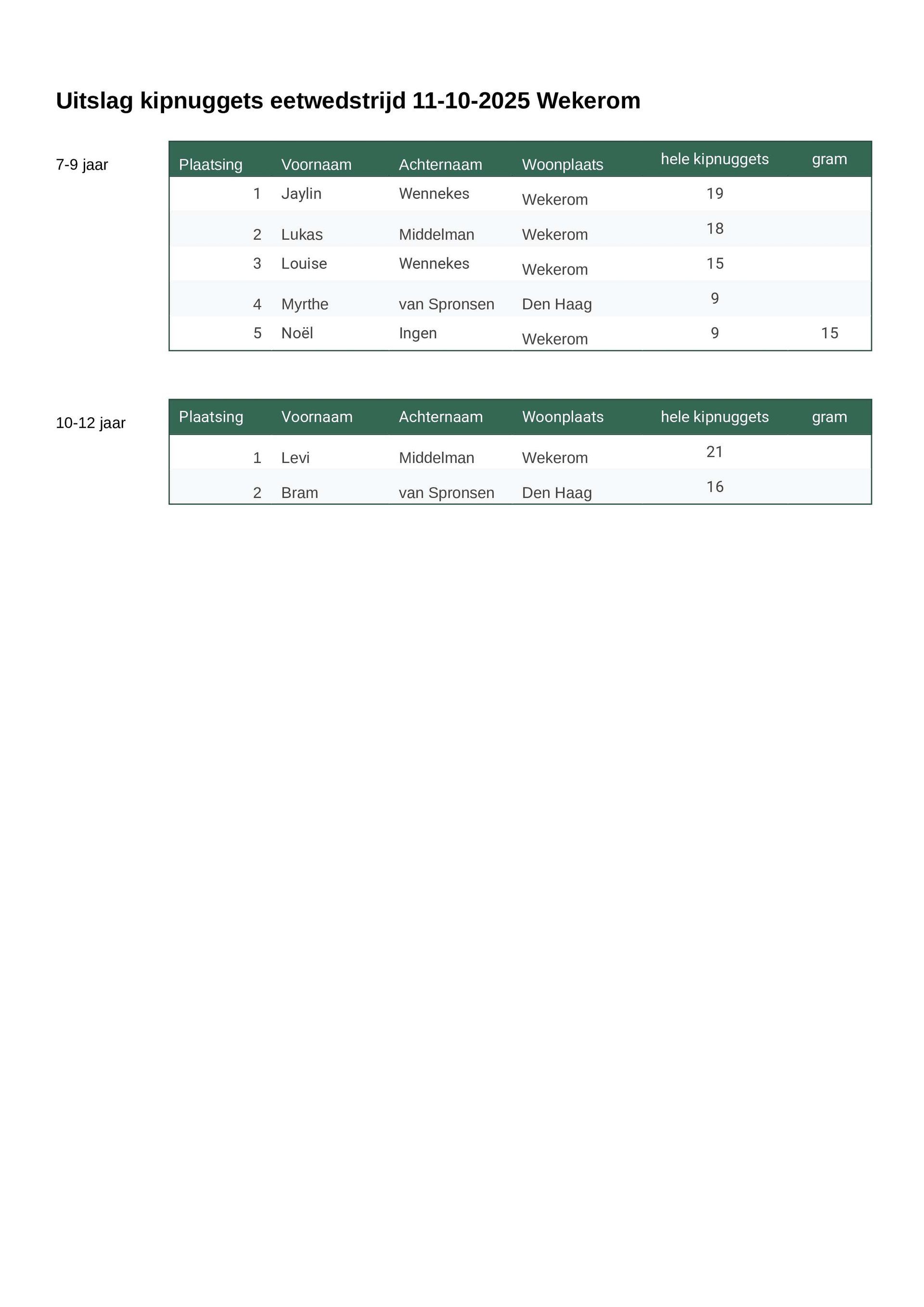 Uitslag kipnuggets eetwedstrijd 2025 kinderen